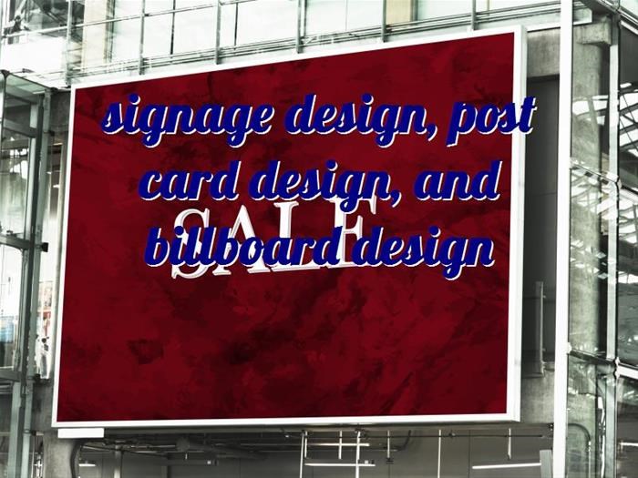 signage design, post card design, and billboard design