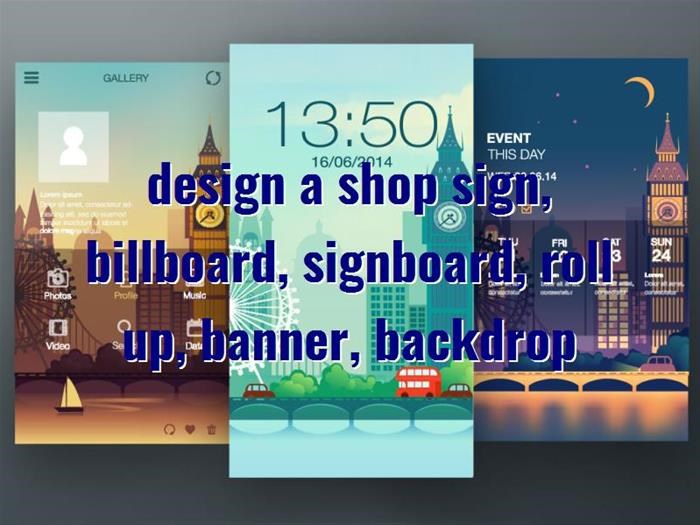 design a shop sign, billboard, signboard, roll up, banner, backdrop