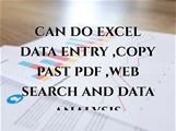 can do excel data entry ,copy past pdf ,web search and data analysis