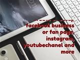 create or setup facebook business or fan page, instagram, youtubechanel and more